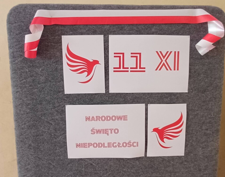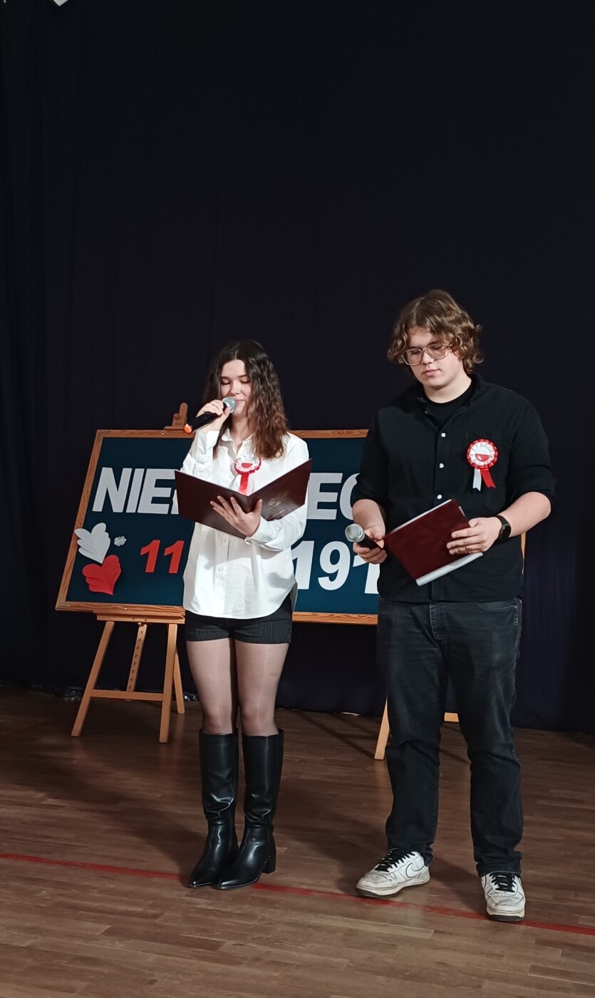 Uroczystość z okazji Święta Niepodległości odbyła się już w piątek 7 listopada. Apel przygotowany był przez p. Katarzynę Osiak- Sarzyńską z klasą 3f.